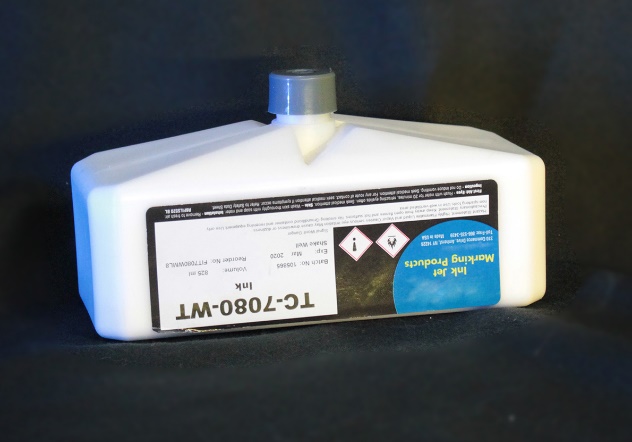 Tinta azul brillante de alto contraste, para aplicación en envases de plástico, botellas, bebidas, cosméticos, artículos de higiene, piezas de metal, cables y tubería PVC, resistencia UV, Tiempo de secado 1 segundo.